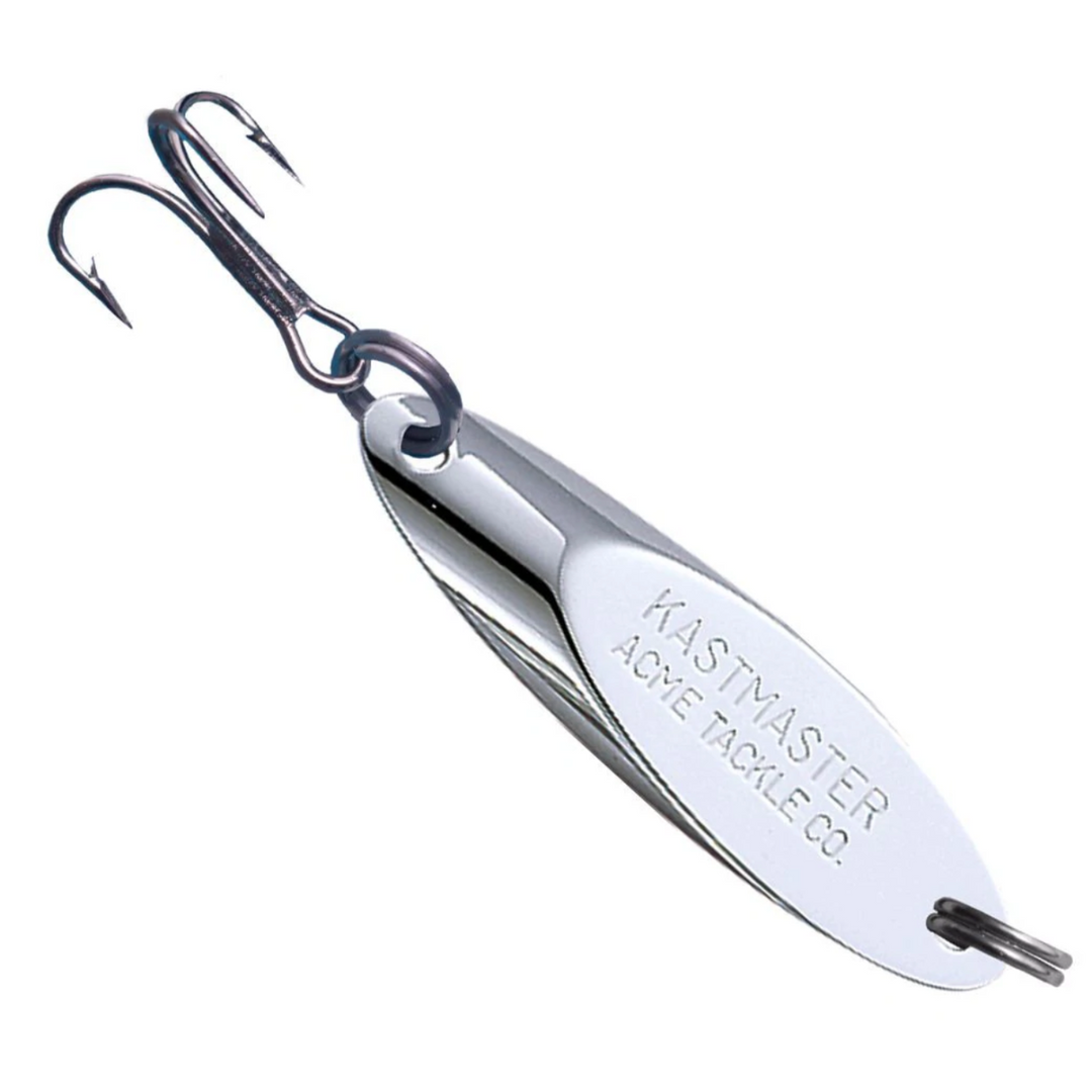The Acme® Kastmaster® Spoon works on a special balance ratio that produces wild action without line twist. Thanks to its aerodynamic design, a Kastmaster Spoon “goes the distance,” setting the standard for long-cast lures. In both fresh and saltwater, this spoon catches fish, from pan-sized trout to huge stripers. The precision-machined Kastmaster won’t break, bend, or corrode, and can be counted on to retain its luster even after repeated use in saltwater.