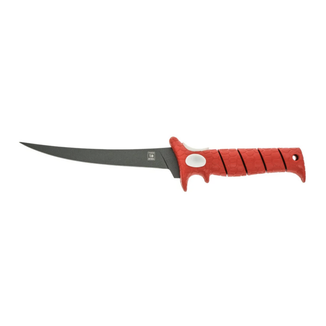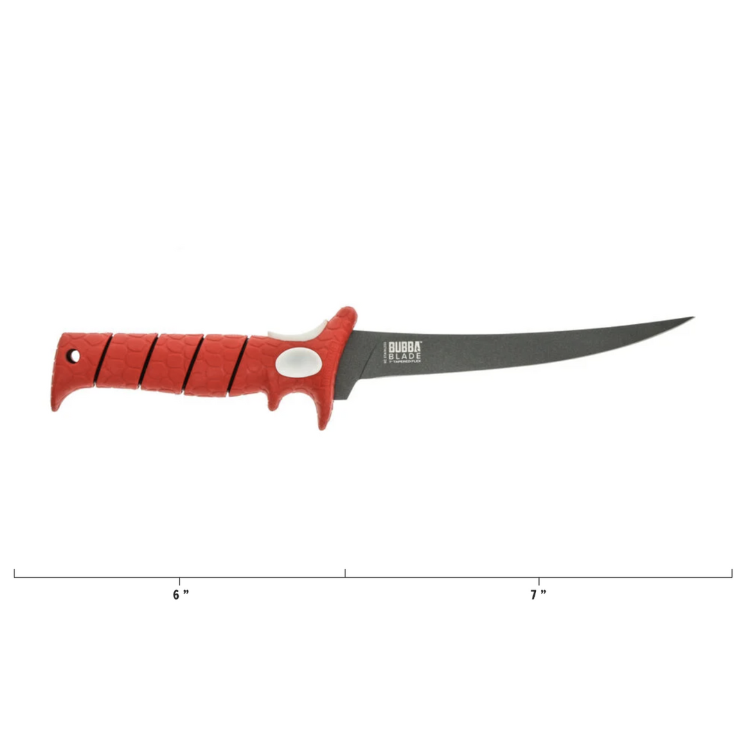 Be sure to add our tapered flex knife to your growing Bubba knife collection. You won’t want to overlook this 7-inch fillet knife. Along with our other knives, it’s made with our signature textured non-slip-grip handle and stainless-steel blade. This non-stick Teflon coated blade gives filleting a whole new feel. With its razor-sharp blade, anyone can fillet a fish. If itās your first time filleting a fish or your thousandth time, this knife will make filleting a piece of cake. Its smooth, clean-cut is ideal for Flounder or Lake Trout and a necessity for all your fishing trips.