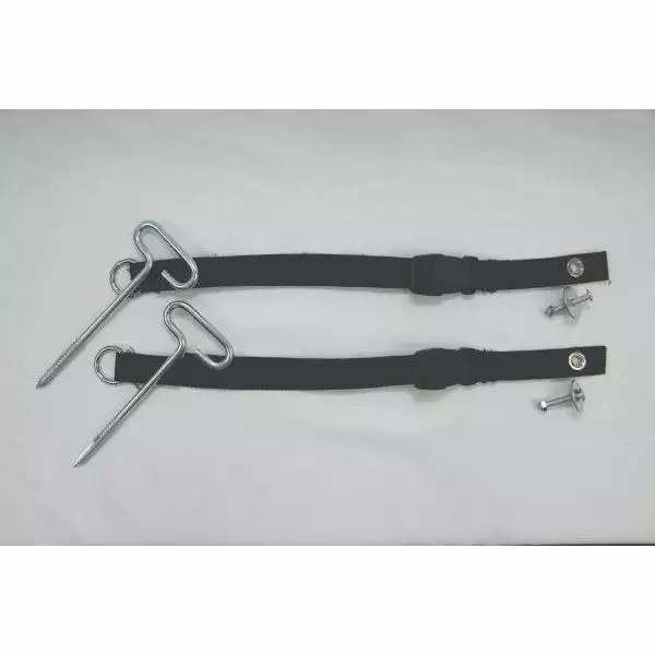 Designed to keep sled style shelters secured on the ice in windy conditions. Our Ice Anchors are engineered to keep your portable shelter secured and in place. The self tapping, specially tooled spikes drive easily into the ice. Each spike is then hooked to the fish house sled with a quick-release nylon strap.
