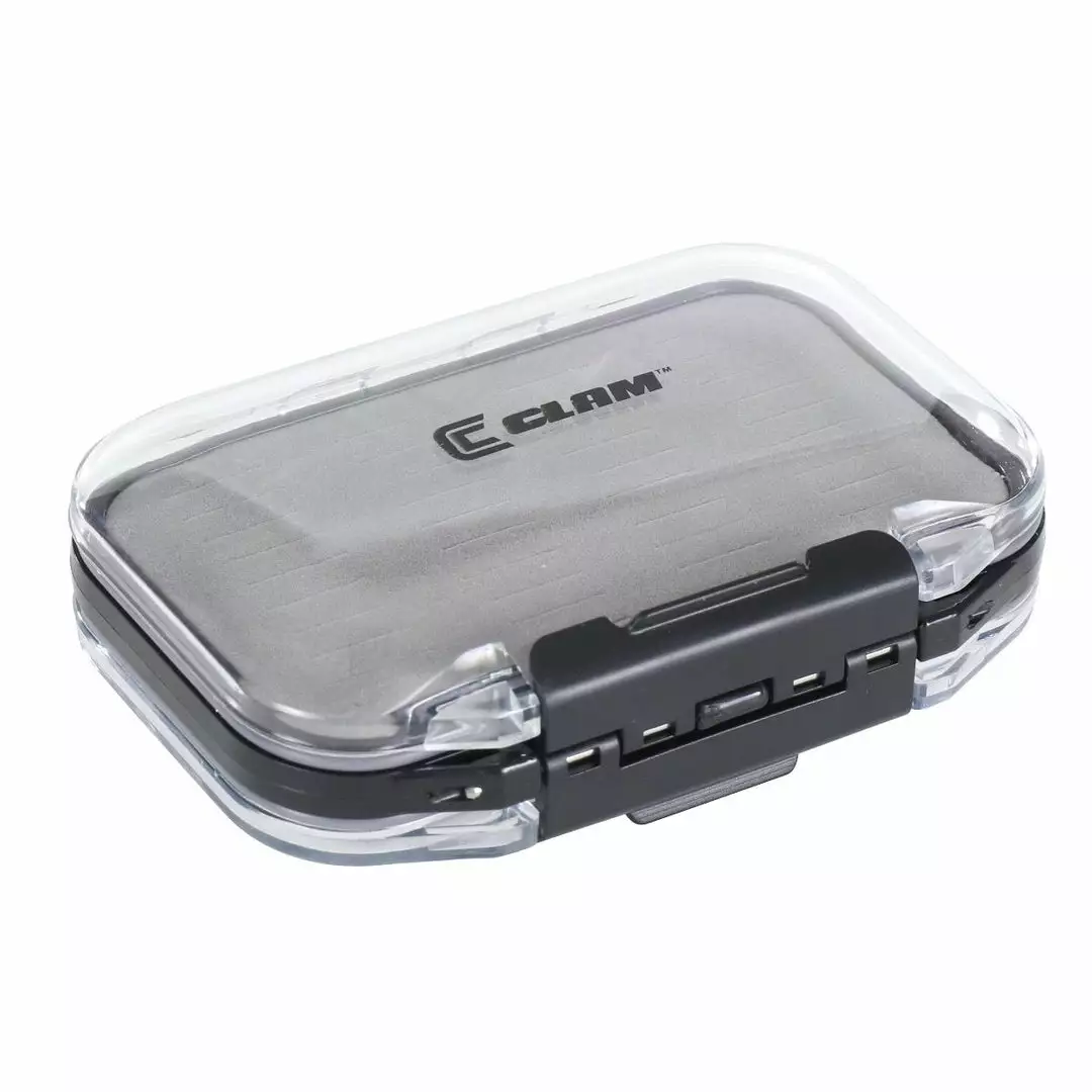 Organize and identify your tackle! Say goodbye to messy and oversized tackle boxes. Clam Jig Boxes are conveniently sized, as well as waterproof. Heavy foam securely holds jigs in place, while the hard plastic exterior case lets anglers see their tackle.