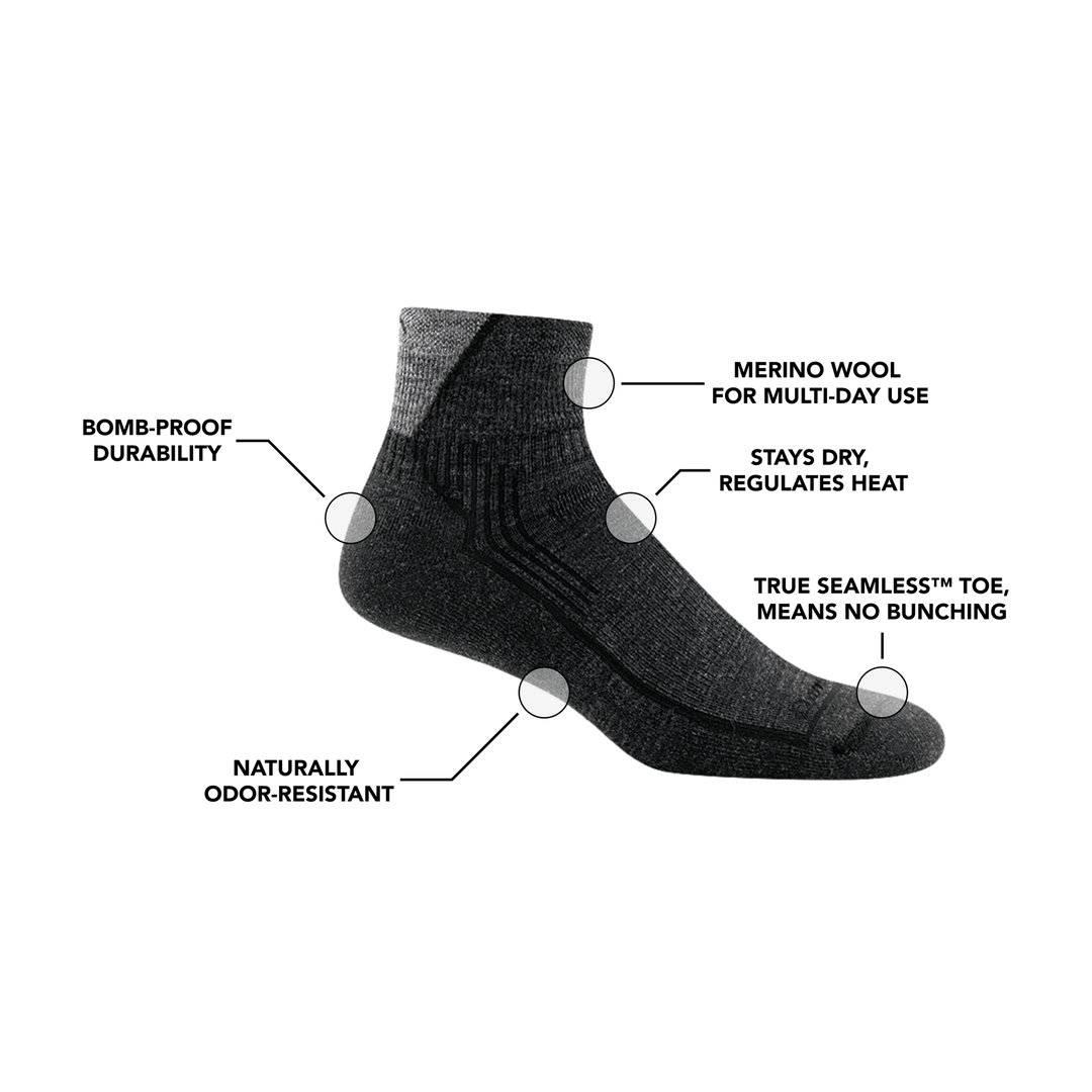 Legendary Darn Tough construction for when “equipment failure” is not an option. Performance Trail Fit means no bunching, no slipping, no blisters. Side vents deliver superior breathability.