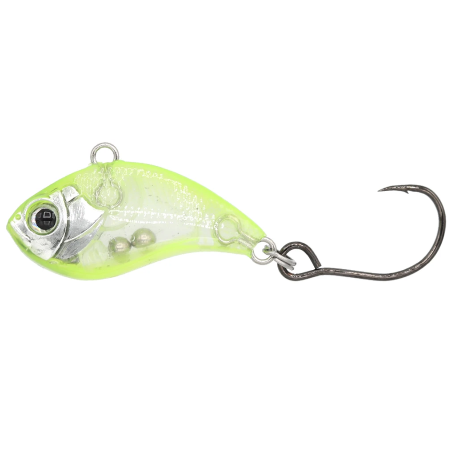 Like the 1/8oz, the 3/8oz version it is the perfect mix between a blade bait and a small lipless crankbait.