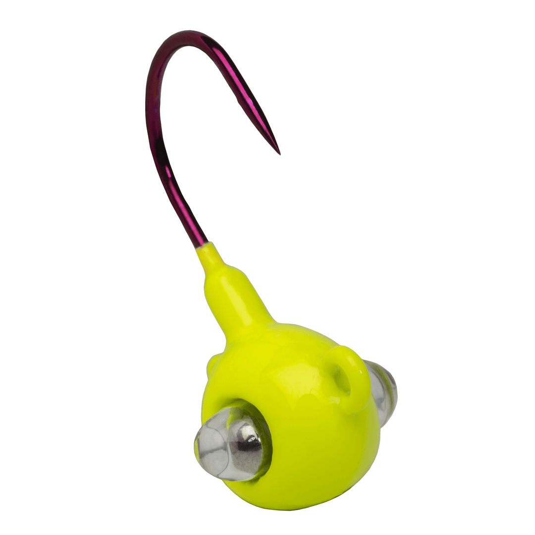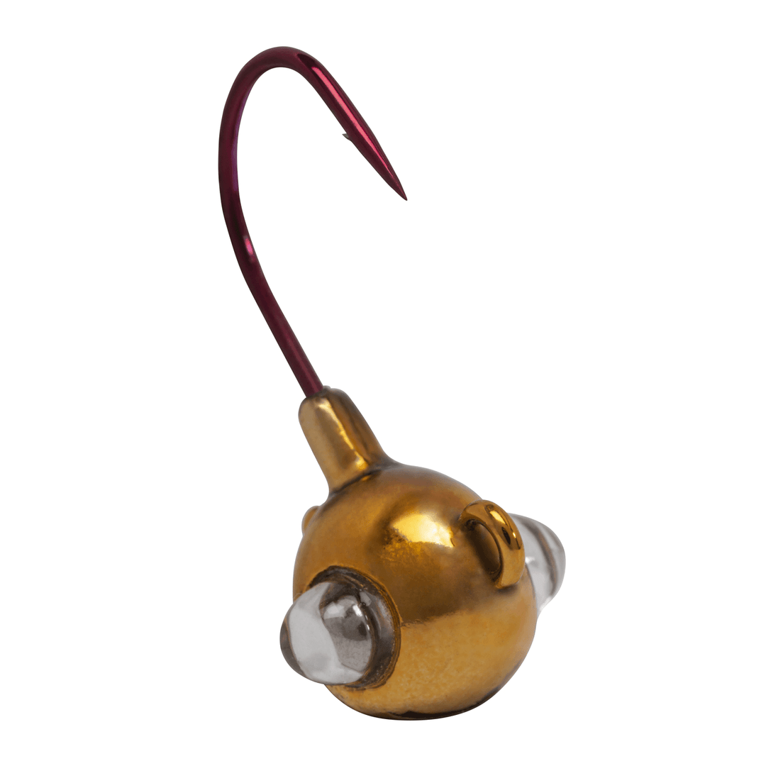 The Google Eye Jig is the combination of sight and soundto trigger more bites in all water types! It’s ShockwaveRattle System has been designed to call fish in and trigger a bite. The Google Eye Jig can be rigged with your favorite Kalin’s plastics, or with live baits, making it one of the most versatile fish catching lures in your tackle box. Cast it, Jig it, Twist it, Rip it, or use a slow steady retrieve along the bottom to match the mood of the fish. The high carbon steel Katana hook, colored in red, is precision sharpened, and hardened to ensure a piercing hookset. The life-like rattling jig head features a glass eye to reflect light and add additional visual dimension and action to the jig. Specially selected color patterns have been chosen to grab the fish’s attention, and put more fish topside. Big fish don’t stand a chance – The Google Eye Jig is sure to become the new standard by which all other jigs are measured.