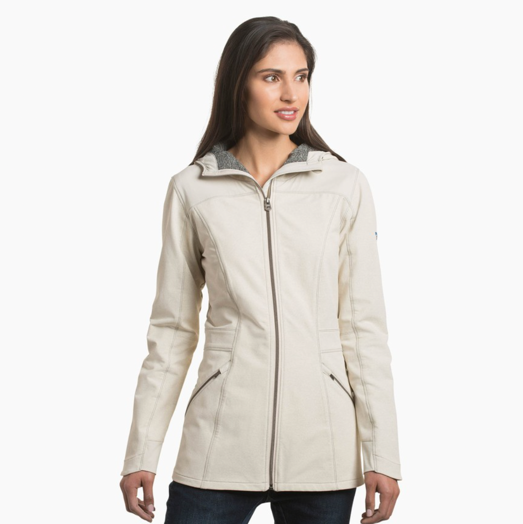 The Women’s KLASH™ TRENCH Jacket is cut from KÜHL’s exclusive FLEXWÜRX™ brushed softshell fabric that highlights a stylish two-tone weave. With superior abrasion resistance and an added water-repellant finish, this jacket delivers durable, year-round, performance. Spacious hand pockets and our signature hood design add style and function.