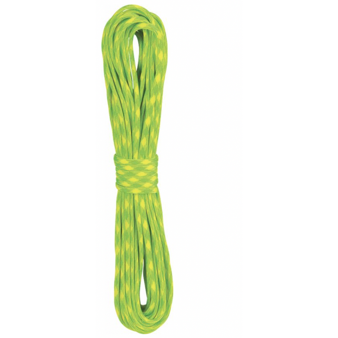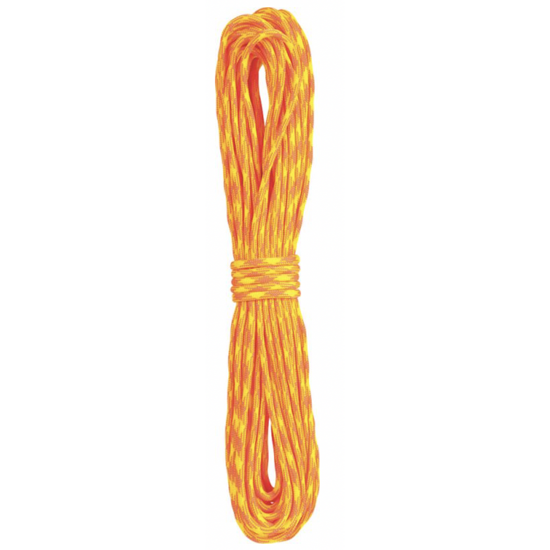 Paracord has hundreds of uses from tent guy lines and hanging bear bags to braiding survival bracelets. Liberty Mountain’s 100% nylon paracord, also known as 550 Cord, is a commercial Type III cord with a minimum break strength of 550 lbs. Kernmantle construction with an outer sheath and 7 inner strands. Inner strands can be removed from the outer sheath for use in a variety of survival situations. Diameter: 5/32” (4 mm). Break Strength: 550 lbs. Made in the USA.