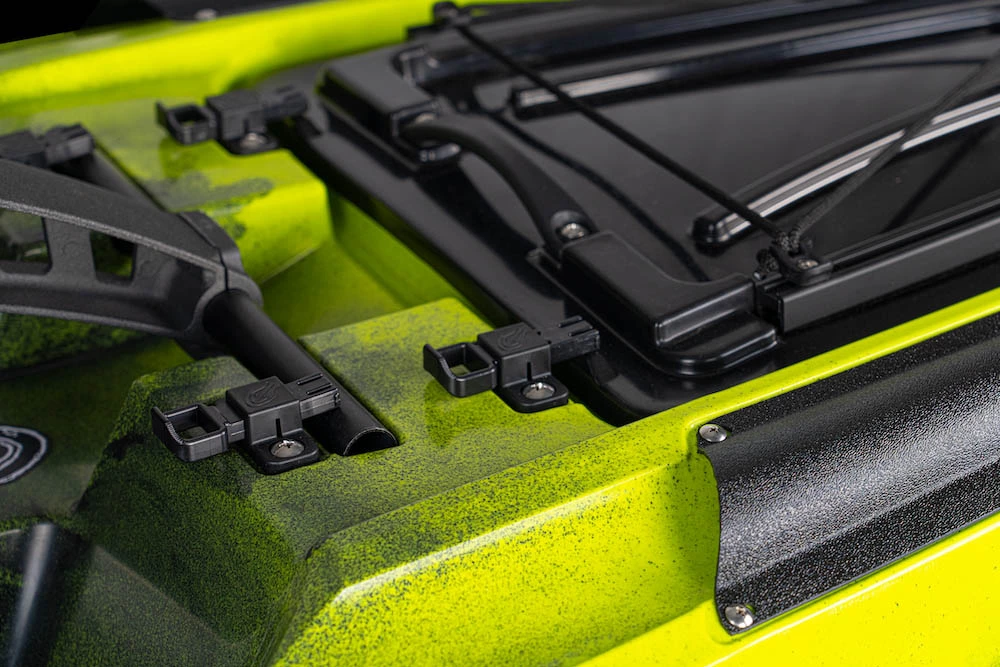 One of our most popular designs of all time, the Slayer Propel 13 has been updated to the max! Meet the new Slayer Propel Max 12.5. Featuring the proven Propel Pedal Drive and impressive kayak fishing features that will take your experience on the water to the next level. The Max 12.5 specializes in freshwater and saltwater environments, making it an incredibly versatile kayak fishing platform. Key features include: The bow hatch area with a small bucket, a location for battery placement and easy transducer wiring through the integrated hull scupper. Built in transducer mounting plate on the hull so you do not have to drill into your kayak to mount your transducer. An electronic switch mounting plate that is replaceable if you want to change your setup without drilling into your boat. Bow and Stern inserts built in for easy mounting of a Power-Pole Micro Anchor or a motor. Ample storage and groove tracks for accessories.