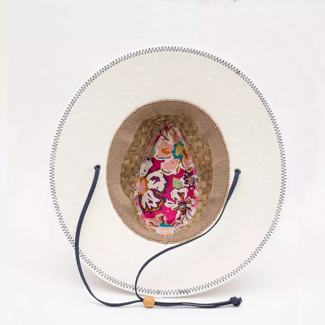 - Detachable, adjustable chin cord with bead helps keep hat in place