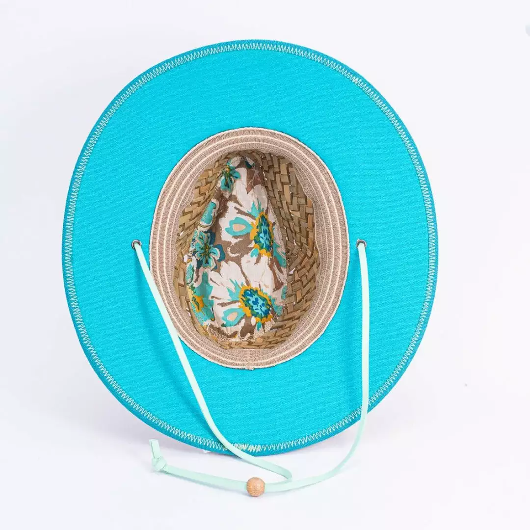 A pop of color under the Laguna’s brim mirrors summer waves. This women’s handmade sun hat is made of natural papyrus with a rigid, structured feel. Tighten the chin cord with the wooden bead slider and set sail.