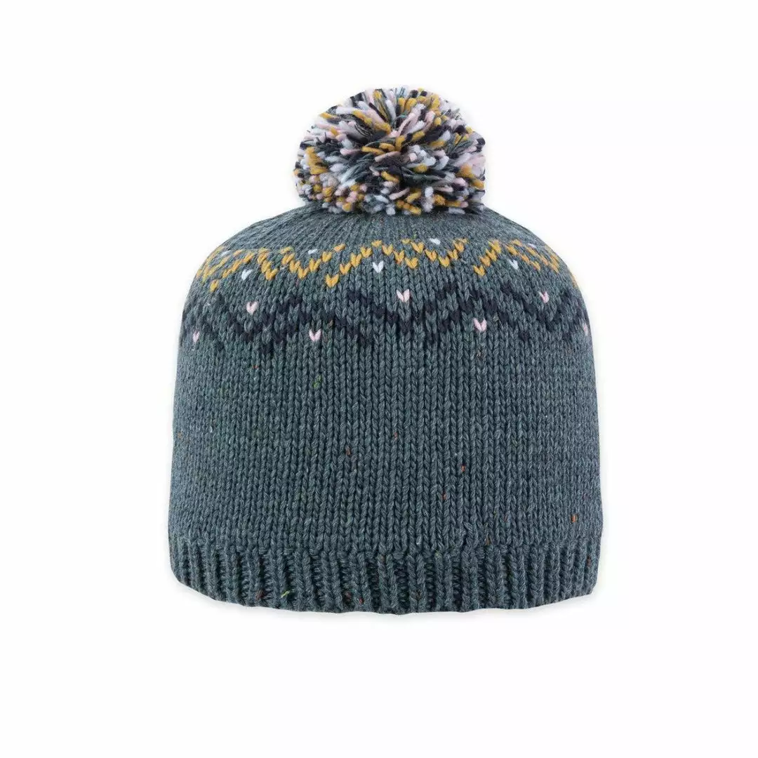 Classic and understated, the Visby is at home in the mountains. This women’s beanie has a fleece earband lining for a cozy feel. It’s decorated with a colorful knit pattern around the top and a fun multicolored pompom.