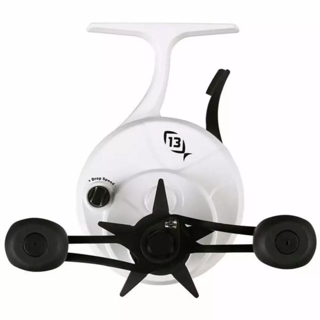 The 13 Fishing FreeFall Ghost Reel features the revolutionary FreeFall trigger that allows hard water anglers to hit specific depths, and get instant hookups by releasing the trigger in the target zone. Expect easy one-handed operation, smooth drag, and the perfect all-around gear ratio for shallow to mid-depth (5-50 ft.) ice fishing. No line twist, drop-speed control, and a tangle-free spool cap create a user-friendly design that simplifies line management and makes your time on the ice more enjoyable.