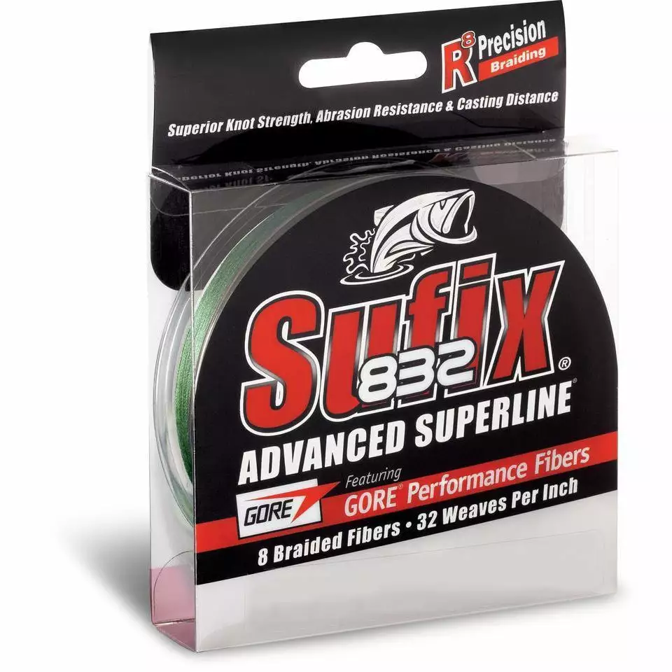 Sufix® 832® Advanced Superline® is the strongest, most durable small diameter braid on the market. R8 Precision Braiding and fiber technology provides superior strength, roundness and line consistency. 832 Advanced Superline has 8 fibers (7 HMPE fibers plus 1 GORE® Performance Fiber) and 32 weaves (pics) per inch. GORE® Performance Fibers improve abrasion resistance, increase casting distance & accuracy and reduce line vibration. HMPE fibers provide high strength & sensitivity, hydrophobic water-repellent protection and small diameter.