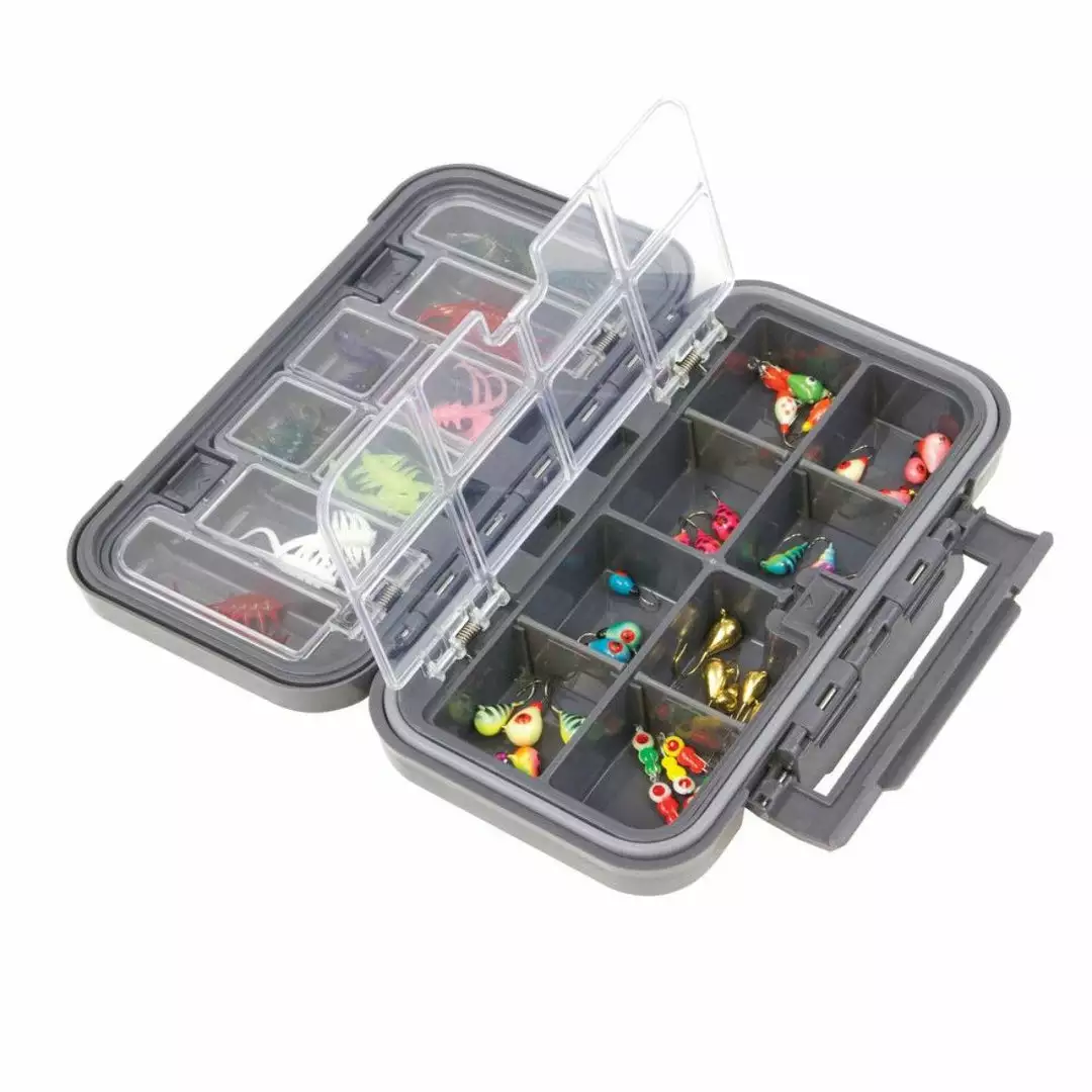 Say goodbye to messy and oversized tackle boxes. Clam Jig Boxes are conveniently sized, as well as waterproof. With a lightweight and watertight tough ABS plastic outer case equipped with durable polyethylene frames inside, these jig boxes let anglers stay organized as well as view your jigs without opening. The Medium Box includes 16 individual jig trays, while the Large Box includes 24 individual jig trays.