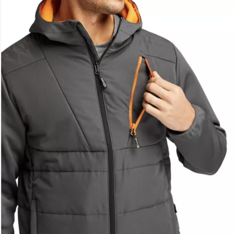 Featuring a touch of contrasting color for visual appeal, this handsome jacket is quilted to help trap warmth inside, and the sleeves and adjustable hood have a double thermal layer for extra protection from the cold. Keep your valuables safe in the two interior stowaway pockets and zipped hand and chest pockets. Plus, this jacket is lined with polyester made from 100% recycled plastic.