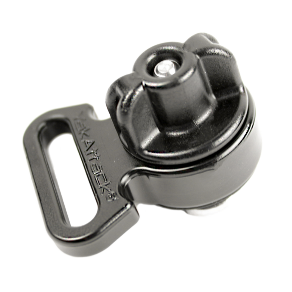 This track mounted tie-down allows a quick and easy attachment point for webbing, small ropes, and bungee in configurations in which the Vertical Tie Down is not ideal. Perfect for securing Blackpaks™, other crate systems, and large gear bags in a kayak tankwell. Compatible with YakAttack MightyMount’s, GearTrac, and most other kayak track systems from Scotty Fishing Products, RAM Mounts, and YakGear. For FeelFree Kayaks, 3 Water Kayaks, and Jonny Boats you will need an adapter to be compatible.