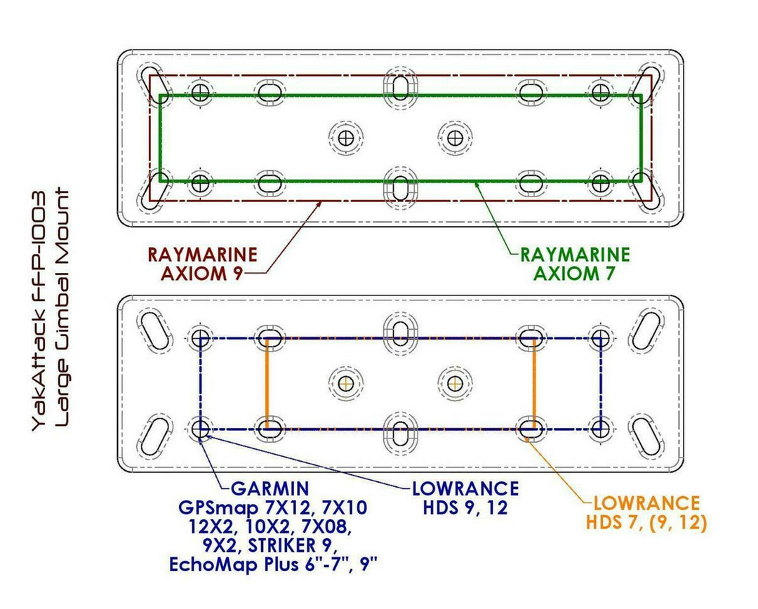 No more ball mounts, no more slipping or rotating in the track. With the LockNLoad™ mounting system, this is the cleanest and most secure mounting solution for larger Lowrance, Garmin, and Raymarine units featuring a gimbal mount such as the Lowrance Hook2 7, Garmin Striker 9sv, and the Raymarine Axion 7. Features the LockNLoad mounting system offering ultra secure attachment to YakAttack MightyMount’s, GearTrac, and most other kayak track systems from Scotty Fishing Products, RAM Mounts, and YakGear. For FeelFree Kayaks, 3 Water Kayaks, and Jonny Boats you will need an adapter to be compatible. We offer the needed adapter in a single pack (AAP-1012) and a six pack (AAP-1012-6).. Hardware included.
